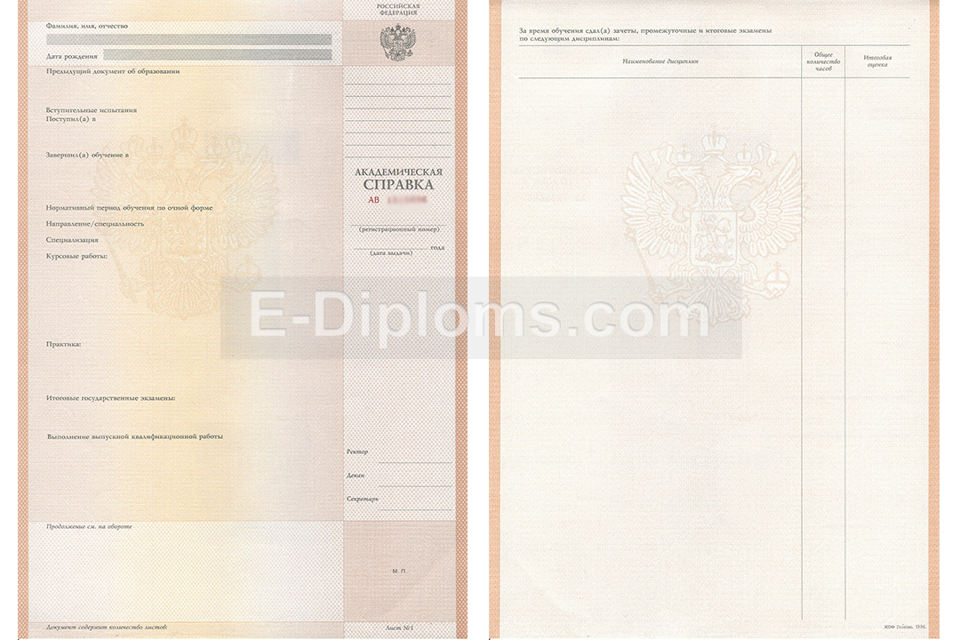 Академическая справка выдается по студенту по запросу при отчислении из ВУЗа, если он успешно окончил хотя бы один год обучения. Может выступать в качестве диплома о неоконченном высшем образовании (в том случае, если Вы окончили 3 курса). В ней содержится информация о личных данных студента (ФИО, дата рождения), предыдущий документ об образовании (например, аттестат или диплом техникума), дата поступления и отчисления из ВУЗа, специальность, по которой Вы обучались, какие сдавали курсовые, информация о прохождении практики, а на обратной стороне вносятся данные о пройденных дисциплинах, часах и оценках.