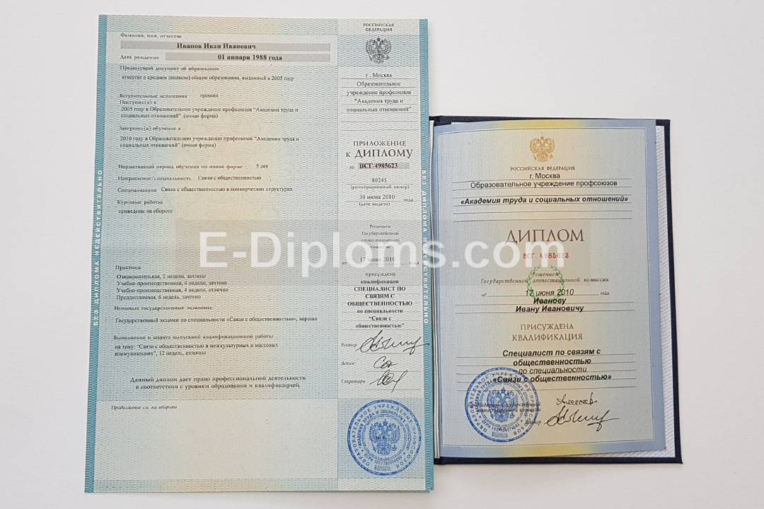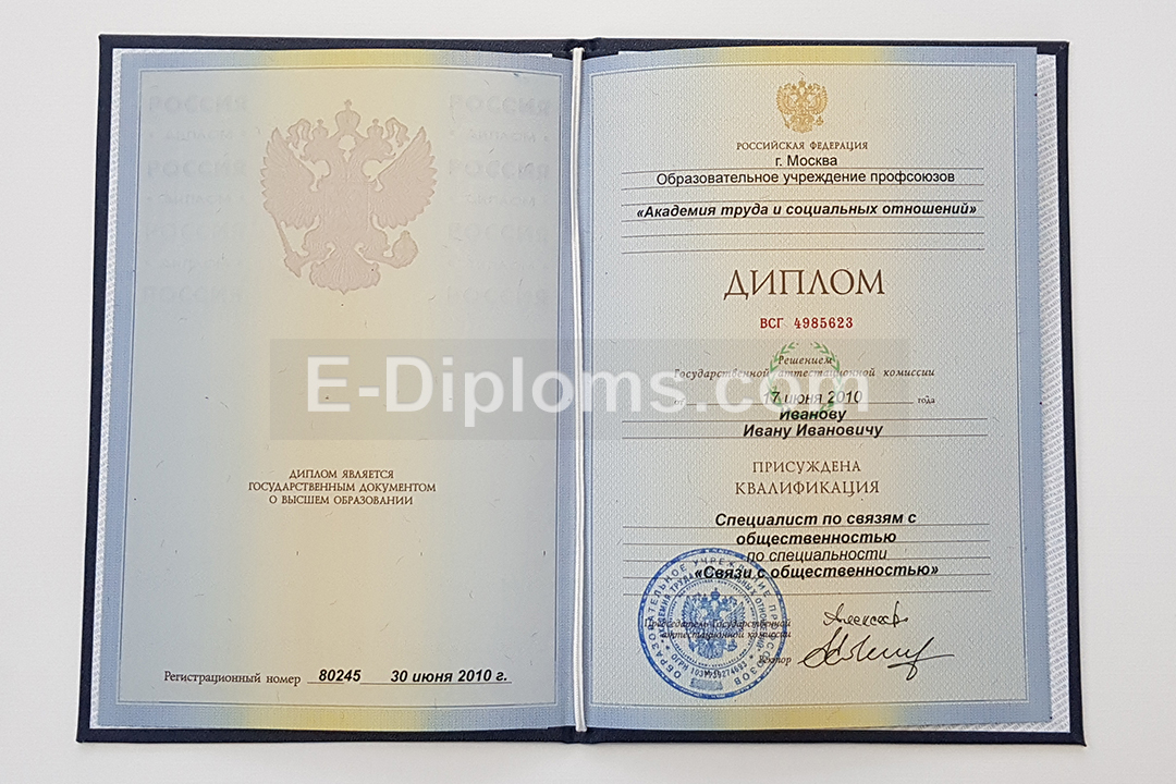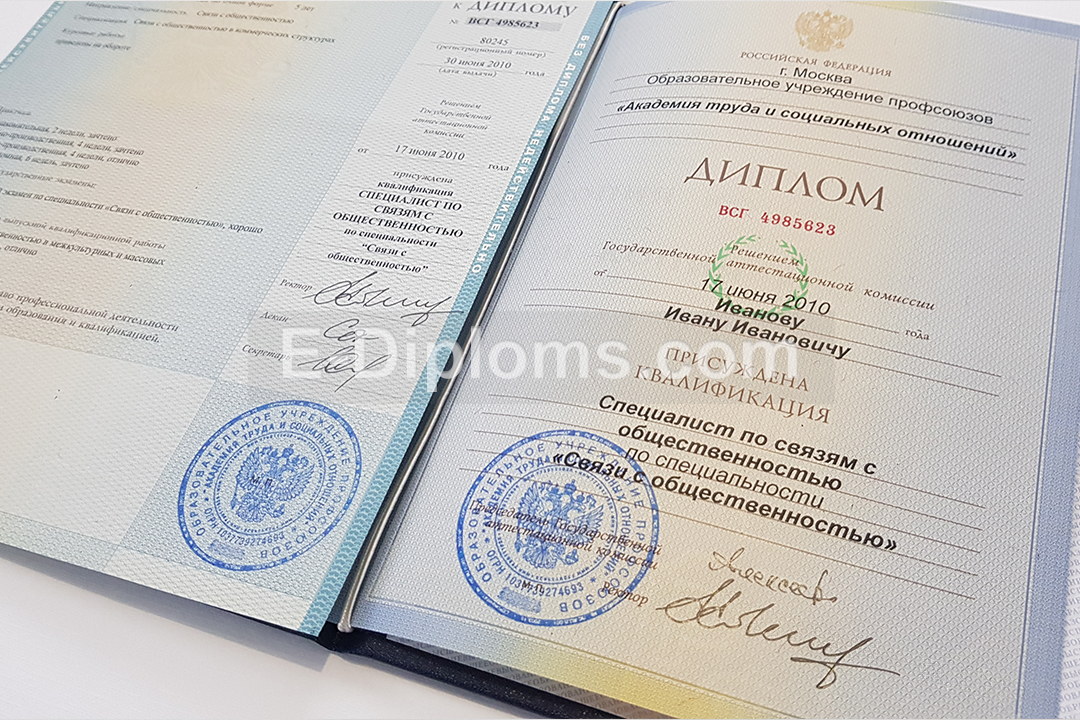 Диплом выдавался выпускникам ВУЗов в 2010, 2011 годах, изготавливается на таких же бланках, которые использовались в университетах и институтах в то время. Учебная программа соответствует специальности, печать и подписи, как в оригинале.